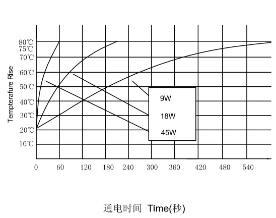 三、U1040推拉式電磁鐵通電時間和溫升曲線圖: